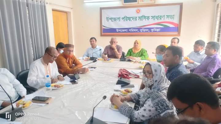 কুমিল্লার বুড়িচং উপজেলা পরিষদের উদ্যোগে মাসিক বিশেষ সাধারণ সভা অনুষ্ঠিত হয়েছে।(২৯ আগস্ট ২০২২) সোমবার উপজেলা নির্বাহী কর্মকর্তার সম্মেলন কক্ষে অনুষ্ঠিত হয়। এতে প্রধান অতিথি হিসেবে উপস্থিত ছিলেন উপজেলা চেয়ারম্যান আখলাক হায়দার। উপজেলা নির্বাহী অফিসার হালিমা খাতুনের সভাপতিত্বে উপস্থিত ছিলেন সহকারি কমিশনার (ভূমি) মো. ছামিউল ইসলাম, উপজেলা পরিষদের মহিলা ভাইস পান্না আক্তার মাহাবুব , উপজেলা উপজেলা স্বাস্থ্য ও পরিবার পরিকল্পনা কর্মকর্তা ডা: মীর হোসেন মিঠু,উপজেলা প্রকৌশলী আলিফ আহাম্মদ অক্ষর, মাধ্যমিক শিক্ষা কর্মকর্তা মোঃ আব্দুল মান্নান, পরিবার পরিকল্পনা কর্মকর্তা রোকসানা খানম মুন্নী, পল্লী উন্নয়ন কর্মকর্তা মোঃ রাসেল সারওয়ার, সমবায় কর্মকর্তা শাহনাজ পারভীন, মহিলা বিষয়ক কর্মকর্তা ফাতেমা তোজ জোহরা, উপজেলা সমাজসেবা অফিসার আবদুল আউয়াল, শংকুচাইলবিজিবি কমান্ডার,খারেরা বিজিবি কমান্ডার, পল্লী বিদ্যূতের ডিজিএম হাফিজুর রহমান রাজাপুর ইউপি চেয়ারম্যান বীর মুক্তিযোদ্ধা মো. আবুল কাশেম, বাকশীমূল ইউপি চেয়ারম্যান আবদুল করিম, বুড়িচং সদর ইউপি চেয়ারম্যান আলহাজ্ব ইঞ্জিনিয়ার জয়নাল