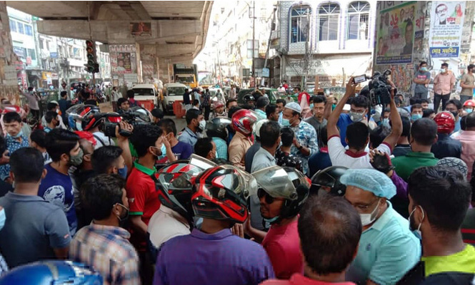 আজ বুধবার (৭ এপ্রিল) দুপুর একটার দিকে মগবাজার মোড়ে কয়েকশ রাইড শেয়ারিংয়ের চালক জড়ো হয়ে বিক্ষোভ শুরু করে। পুলিশের সঙ্গে বাকবিতণ্ডায়ও জড়াতে দেখা যায় তাদের। তাদের রাস্তা অবরোধের কারণে এয়ারপোর্ট রোড, বাংলামোটর রোড, কাকরাইল রোড ও মৌচাক রোডে তীব্র যানজটের সৃষ্টি হয়েছে।