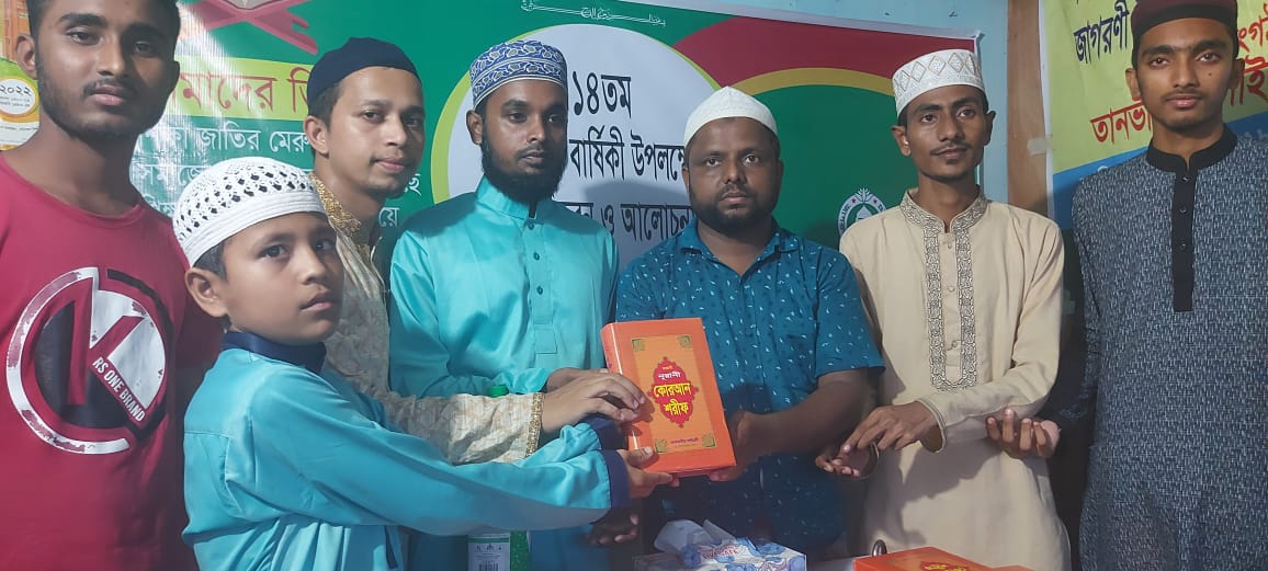 অনুষ্ঠান শেষে সংস্থার পক্ষ থেকে মাদ্রাসার শিক্ষার্থীদের মাঝে পবিত্র ক্বোরআন বিতরণ করা হয়,এবং সংস্থার প্রতিষ্ঠাতা কালিন সদস্য বর্তমান উপদেষ্টা মাও কবির হোসাইন এর দোয়ার মাধ্যমে অনুষ্ঠানের সমাপ্তি করা হয়েছে।