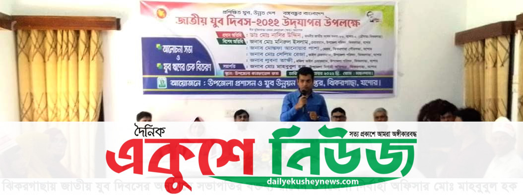 প্রশিক্ষিত যুব, উন্নত দেশ বঙ্গবন্ধুর বাংলাদেশ এই স্লোগানকে সামনে রেখে যশোরের ঝিকরগাছায় জাতীয় যুব দিবস পালিত হয়েছে। উপজেলা প্রশাসন ও উপজেলা যুব উন্নয়ন অধিদপ্তরের আয়োজনে মঙ্গলবার সকাল ১০টায় উপজেলা পরিষদ থেকে র্যালী শেষে অফিসার্স ক্লাবের হলরুমে আলোচনা সভা ও ২৬জন যুব সংগঠকদের মাঝে ১৩ লক্ষ ৩০হাজার টাকার যুব ঋণের চেক বিতরণ অনুষ্ঠিত হয়। অনুষ্ঠানে উপজেলা নির্বাহী অফিসার মোঃ মাহবুবুল হক’র সভাপতিত্বে ও উপজেলা যুব উন্নয়ন অফিসার মোঃ আরব আলীর স্বাগত বক্তব্যের মাধ্যমে অনুষ্ঠানে বিশেষ অতিথি ছিলেন, উপজেলা চেয়ারম্যান মোঃ মনিরুল ইসলাম, উপজেলা ভাইস চেয়ারম্যান মোঃ সেলিম রেজা, মহিলা ভাইস চেয়ারম্যান লুবনা তাক্ষী, উপজেলা সমাজসেবা অফিসার মেজবাহ উদ্দিন। এসময় উপস্থিত ছিলেন, পেন ফাউন্ডেশনের নির্বাহী পরিচালক মেঘনা ইমদাদ, সজন চক্রের নির্বাহী পরিচালক সুভাষ ভক্ত, যুব সংগঠনের আত্মকর্মী নাসরিন আক্তার, সোহেল হাওলাদার প্রমুখ। অনুষ্ঠানটি সঞ্চালনা করেন, জেডিও সংগঠনের নির্বাহী পরিচালক মনিরুজ্জামান মনির।