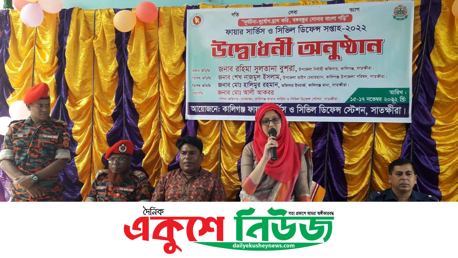 “দুর্ঘটনা দুর্যোগ হ্রাস করি, বঙ্গবন্ধুর সোনার বাংলা গড়ি” এই প্রতিপাদ্যকে সামনে রেখে সাতক্ষীরার কালিগঞ্জে ফায়ার সার্ভিস ও সিভিল ডিফেন্স সপ্তাহের উদ্বোধন অনুষ্ঠিত হয়েছে।