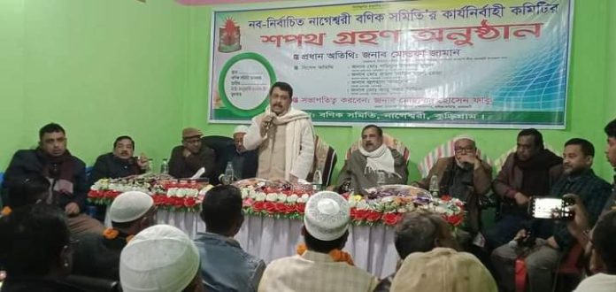 নাগেশ্বরীতে বণিক সমিতির আয়োজনে বণিক সমিতির নব নির্বাচিত কার্যনির্বাহী কমিটির সদস্য গনের শপথ গ্রহন,বরণ ও ব্যবসায়ীদেরকে নিয়ে গত কাল ২৪ জানুয়ারী বুধবার সন্ধায় আলোচনা সভা অনুষ্ঠিত হয়েছে।