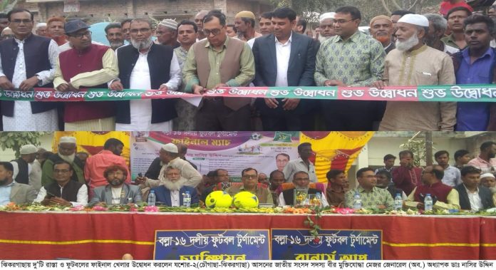 ঝিকরগাছা বল্লা গ্রামে দুটি রাস্তা ও ১৬ দলীয় ফুটবল টুর্নামেন্টের ফাইনাল খেলা উদ্বোধন করেন, নাসির উদ্দিন এম পি