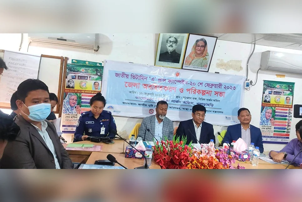 খাগড়াছড়িতে ভিটামিন ‘এ’ ক্যাপসুল খাওয়ানো শুরু করার লক্ষ্যে এক অবহিতকরণ সভা অনুষ্ঠিত হয়েছে। রবিবার সিভিল সার্জন কার্যালয়ের সম্মেলন কক্ষে এ সভা অনুষ্ঠিত হয়।