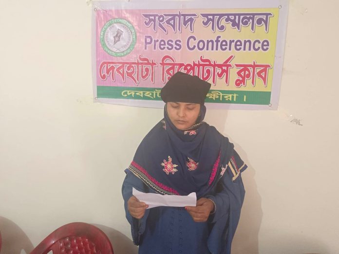 দেবহাটায় নাবালিকা মেয়েকে ফুসলিয়ে নিয়ে যাওয়ার অভিযোগে মা সংবাদ সম্মেলন করেছেন। দেবহাটা রিপোর্টার্স ক্লাবে মঙ্গলবার (২১ মার্চ) সকাল ১১টায় অনুষ্ঠিত উক্ত সাংবাদিক সম্মেলনটি করেন দেবহাটা উপজেলার দক্ষিণ কুলিয়া গ্রামের আলমগীর হোসেন তৈমুরের স্ত্রী সাফিয়া খাতুন (৩৫)। লিখিত বক্তব্যে তিনি বলেন, তার মেয়ে কুলিয়া এলাহী বক্স দাখিল মাদ্রাসার দশম শ্রেনীর ছাত্রী। তার মেয়ে মাদ্রাসায় যাওয়া আসার পথে দক্ষিণ কুলিয়া গ্রামের নুরুজ্জামান সাহাজীর ছেলে নুর আলম প্রায়ই সময় উত্যক্ত করতো। এর আগে নুর আলমকে ও তার পরিবারের অভিভাবকদেরকে এবিষয়ে জানানো হলেও তারা তাদের ছেলেকে এই বিষয়ে কোন শাসন বা কোন ব্যবস্থা গ্রহন করেনি। সাফিয়া খাতুন বলেন, তার শ্বাশুড়ি গুরুতর অসুস্থ অবস্থায় সাতক্ষীরা মেডিকেল কলেজ হাসপাতালে চিকিৎসাধীন আছেন।