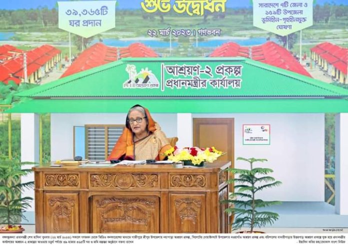 প্রধানমন্ত্রী আজ তাঁর সরকারি বাসভবন গণভবন থেকে ভার্চুয়ালি এক অনুষ্ঠানের মাধ্যমে আশ্রয়ণ-২ প্রকল্পের চতুর্থ ধাপে এসব বাড়ি হস্তান্তর করেন।