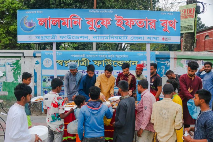 স্বপ্নযাত্রী ফাউন্ডেশন লালমনিরহাট এর উদ্যোগে “লালমনি বুফে ইফতার বুথ” এর ফ্রী মাসব্যাপী ইফতার বিতরণ শুরু