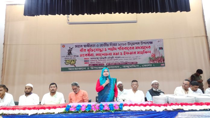 ছবি ক্যাপশন: তজুমদ্দিনে স্বাধীনতা দিবস উপলক্ষে মুক্তিযোদ্ধাদেরকে সংবর্ধনা প্রদান।
