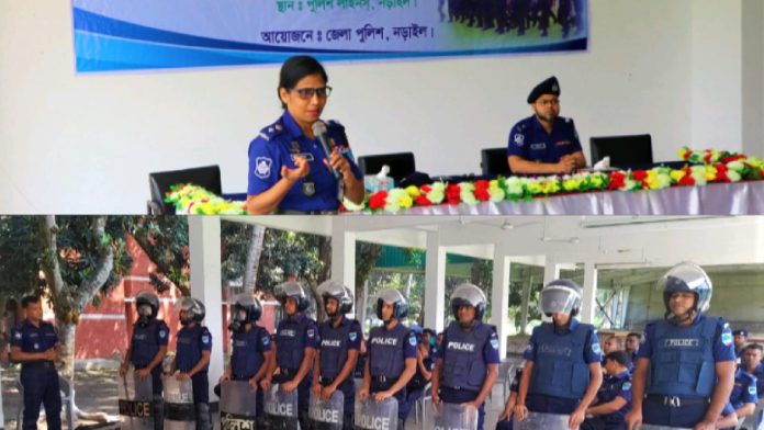 স্মার্ট বাংলাদেশের স্মার্ট পুলিশিং ব্যবস্থা বিনির্মাণের লক্ষ্যে নড়াইল জেলা পুলিশের আয়োজনে আজ ২৯ মার্চ (বুধবার) পুলিশ লাইনসে্ অনুষ্ঠিত ০২(দুই) দিন মেয়াদি “জনশৃঙ্খলা ব্যবস্থাপনা প্রশিক্ষণ কর্মসূচি সম্পন্ন হয়েছে। যে কোন উদ্ভুত পরিস্থিতিতে নড়াইল জেলার জনশৃঙ্খলা ব্যবস্থাপনায় প্রচলিত বিধি-বিধান সম্পর্কে সম্যক ধারণা লাভ এবং এর যথাযথ ব্যবহার নিশ্চিতকল্পে মাঠ পর্যায়ে কর্মরত কনস্টেবল হতে এসআই (সঃ/নিঃ) পদমর্যাদার পুলিশ সদস্যদের পেশাগত দক্ষতা বৃদ্ধির লক্ষ্যে এ প্রশিক্ষণ কর্মসূচির আয়োজন করা হয়। উক্ত প্রশিক্ষণ কর্মসূচির উদ্বোধন করেন এবং প্রধান অতিথি হিসেবে বক্তব্য রাখেন জনাব মোসাঃ সাদিরা খাতুন, সুযোগ্য পুলিশ সুপার, নড়াইল।