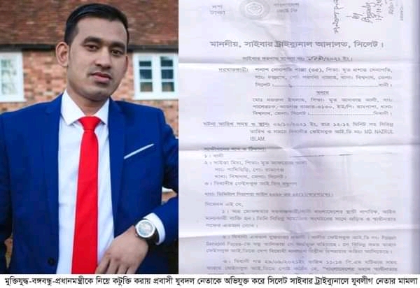 ‘মহান মুক্তিযুদ্ধকে পাকিস্তান ভাঙ্গার ষড়যন্ত্র উল্লেখ করে স্বাধীনতার বিরোধীতা এবং জাতির জনক বঙ্গবন্ধু শেখ মুজিবুর রহমান ও প্রধানমন্ত্রী শেখ হাসিনা’কে নিয়ে সামাজিক যোগাযোগ মাধ্যম ফেসবুকে কটুক্তি করায় যুক্তরাজ্যের লন্ডন সিটি যুবদলের সহ সাংগঠনিক সম্পাদক নজরুল ইসলামের বিরুদ্ধে সিলেট সাইবার ক্রাইম ট্রাইবুন্যাল আদালতে মামলা দায়ের করা হয়েছে। মামলা নং ১১৯/২১ইং।
