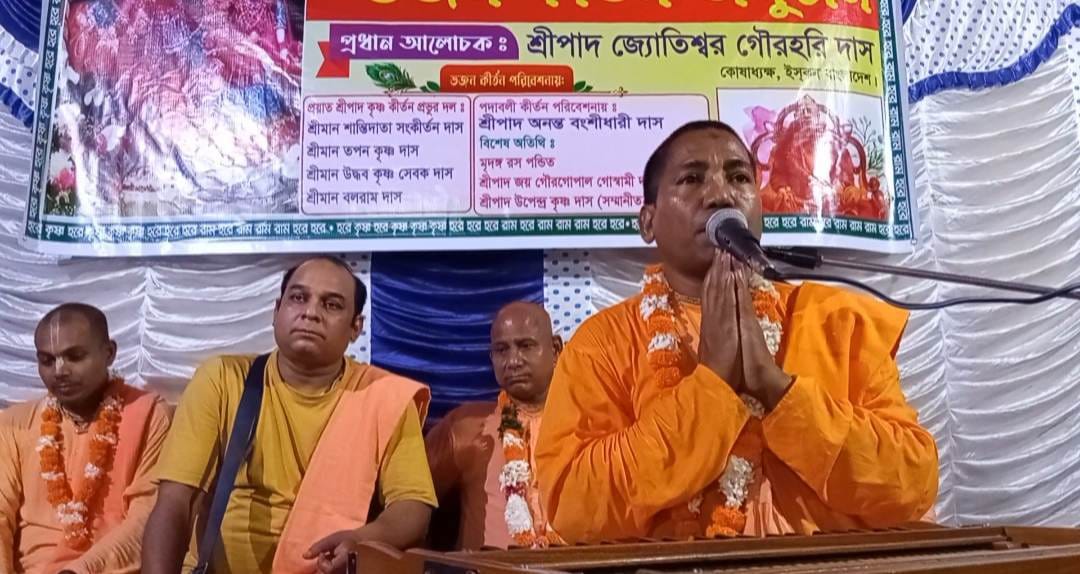 আনন্দপূর্ণ পরিবেশে কুষ্টিয়ার খোকসায় ভজন কীর্তন, গৌরকথা ও ভাগবতীয় আলোচনা সভা অনুষ্ঠিত হয়েছে।