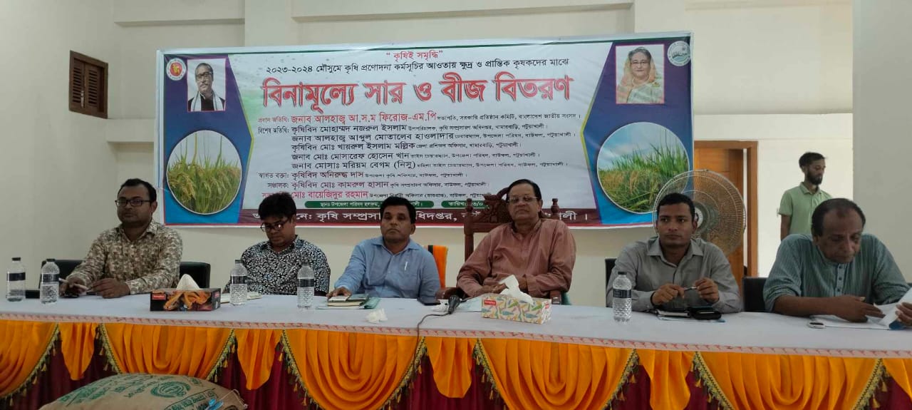 পটুয়াখালীর বাউফলে ২০২৩-২০২৪ মৌসুমে কৃষি প্রণোদনা কর্মসূচির আওতায় ক্ষুদ্র ও প্রান্তিক কৃষকদের মাঝে বিনামূল্যে সার ও বীজ বিতরণ করা হয়। সোমবার (৩ জুলাই) সকাল ১০ টায় বাউফল উপজেলা অডিটরিয়ামে উপজেলা নির্বাহী অফিসার (ভারপ্রাপ্ত) মো. বায়েজিদুর রহমানের সভাপতিত্বে প্রধান অতিথি হিসেবে উপস্থিত ছিলেন জাতীয় সংসদের সাবেক চীফ হুইপ ও সরকারি প্রতিষ্ঠান কমিটির সভাপতি বীর মুক্তিযোদ্ধা আলহাজ্ব আ স ম ফিরোজ এমপি।