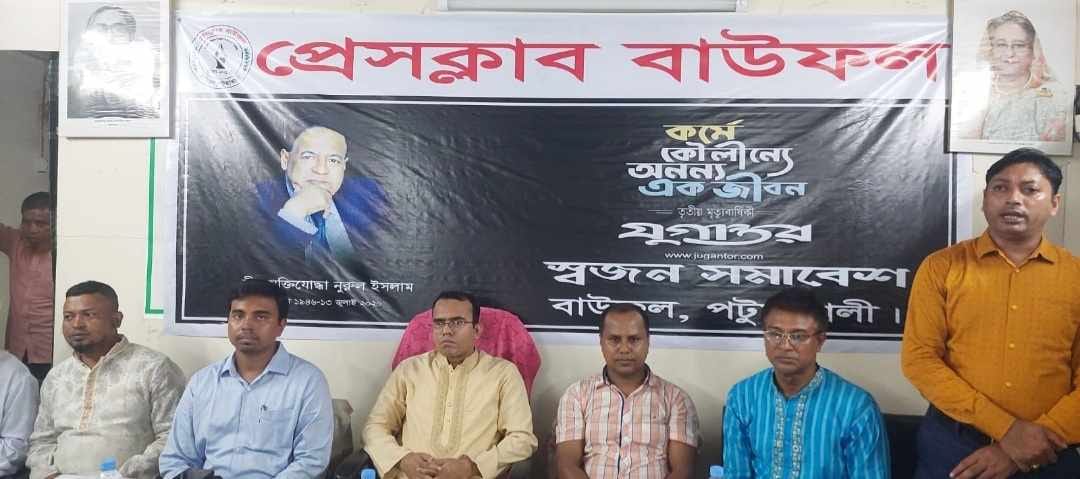 শনিবার (১৫ জুলাই) বিকাল ৫টা৩০মিনিটে ‘প্রেসক্লাব বাউফল’ এর সভাপতি ও দৈনিক যুগান্তর পত্রিকার স্টাফ রিপোর্টার মোঃ আরিফুজ্জামান খান রিয়াদ এর উদ্যোগে আলোচনা সভা ও দোয়া মাহফিল অনুষ্ঠিত হয়েছে।