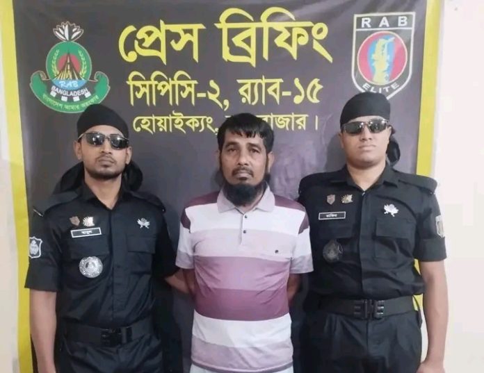 টেকনাফ থেকে ৯৫০ পিস ইয়াবা ও ৩০টি বিদেশী মদের বোতলসহ একজনকে আটক করেছে র‌্যাব-১৫