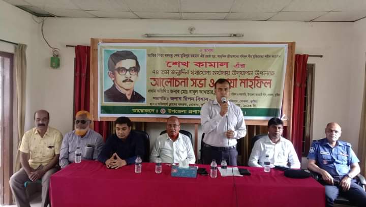 কুষ্টিয়ার খোকসায় সর্বকালের সর্বশ্রেষ্ঠ বাঙালী, স্বাধীনতার মহান স্থপতি জাতির পিতা বঙ্গবন্ধু শেখ মুজিবুর রহমানের জ্যেষ্ঠ পুত্র বীর মুক্তিযোদ্ধা শহীদ ক্যাপ্টেন শেখ কামাল এঁর ৭৪ তম জন্মবার্ষিকী উদযাপন উপলক্ষ্যে আলোচনা সভা ও দোয়া মাহফিল অনুষ্ঠিত।