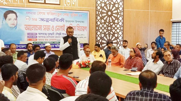জাতীর জনক বঙ্গবন্ধু শেখ মুজিবুর রহমানের সহধর্মিনী বঙ্গমাতা শেখ ফজিলাতুন্নেছা মুজিবের ৯৩তম জন্মদিনের আলোচনা সভায় প্রধান অতিথির বক্তৃতায় নুরুন্নবী চৌধুরী শাওন এমপি বলেন, দেশ ও জাতির জন্য বেগম ফজিলাতুন্নেছা মুজিবের অপরিসীম ত্যাগ, তিতিক্ষা ও অবদানের জন্য জাতি তাকে বঙ্গমাতা খেতাবে ভূষিত করেছে। বঙ্গবন্ধুর অনুপস্থিতিতে স্বাধীনতা আন্দোলনে অন্যতম অনুপ্রেরণা ও শক্তি ছিলেন বঙ্গমাতা শেখ ফজিলাতুন্নেছা মুজিব। বাংলাদেশের সার্বিক ক্ষেত্রে বঙ্গমাতার অসামান্য অবদানের জন্য তিনি চিরস্মরণীয় হয়ে আছেন। বাংলাদেশের স্বাধীনতা আন্দোলন ও জাতীয় ইতিহাসের সকল পর্যায়ে বঙ্গবন্ধু এবং দলীয় নেতাকর্মীদের অনুপ্রেরণা, শক্তি, সাহস, মনোবল ও সঠিক পরামর্শের উৎস হয়ে উঠেছিলেন বঙ্গমাতা বেগম মুজিব।