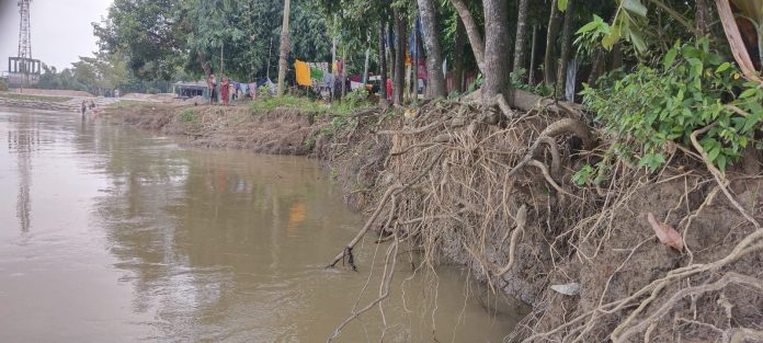 নদীর তীরের বাসিন্দা নুর ইসলাম জানান তার বাড়িতে এক বিঘা জমি ছিলো কিন্তু নদীতে তার পুরো বসতবাড়ি বিলীন হয়ে গেছে। এখন নদী থেকে অনেক দুর গিয়ে এক শতক জমি কিনে কোনমতে পরিবার নিয়ে বসবাস করছেন।