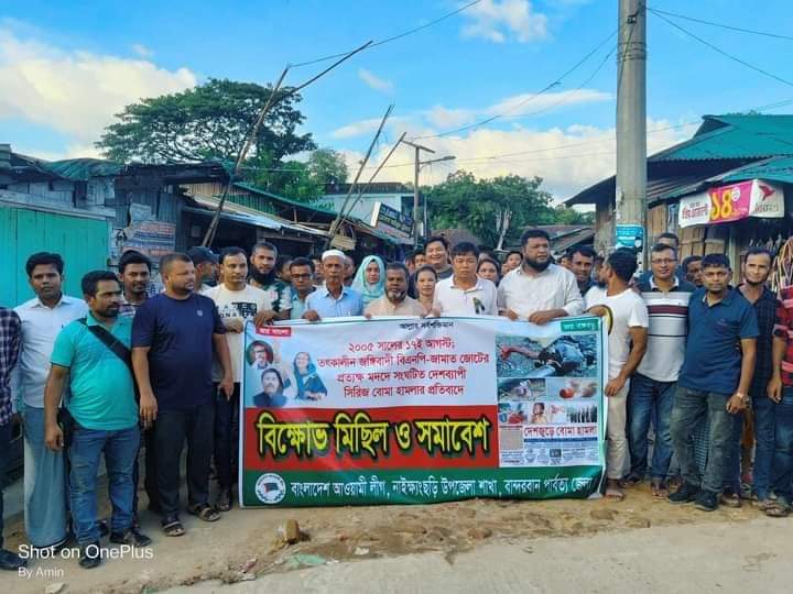 সিরিজ বোমা হামলার প্রতিবাদে নাইক্ষ্যংছড়ি উপজেলায় বিক্ষোভ মিছিল ও প্রতিবাদ সমাবেশ অনুষ্ঠিত।