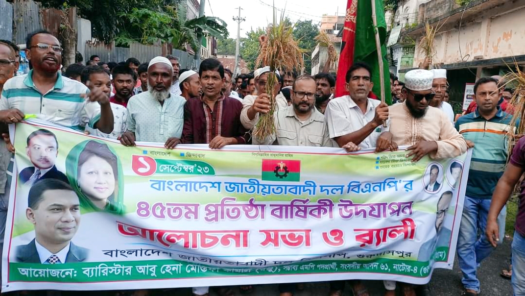 নাটোর-৪ আসনের প্রয়াত এমপি মোজাম্মেল হকের জৈষ্ঠ পুত্র ব্যারিষ্টার আবু হেনা মোস্তফা কামাল রঞ্জুর নেতৃত্বে বিভিন্ন কর্মসূচীর মধ্য দিয়ে জাতীয়তাবাদী দল বিএনপির ৪৫তম প্রতিষ্ঠা বার্ষিকী পালন করেছে গুরুদাসপুর উপজেলা বিএনপির নেতা কর্মীরা।
