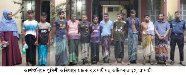 আশাশুনি থানা পুলিশের অভিযানে ১০০ গ্রাম গাঁজাসহ দুই মাদক ব্যবসায়ী, ওয়ারেন্টভূক্ত দুই ও নিয়মিত মামলায় ০৮ জন সর্বমোট ১২ জন আসামীকে আটক করা হয়েছে। থানার অফিসার ইনচার্জ বিশ্বজিৎ কুমার অধিকারী এর নেতৃত্বে শনিবার এসআই বিজন কুমার সরকার, এসআই আমিনুল ইসলাম, এসআই মুহিতুর রহমান, এএসআই ইনামুল মোল্যা, এএসআই মারুফ কবির সঙ্গীয় ফোর্স এর সহায়তায় ১০০ গ্রাম গাঁজাসহ উপজেলার গাজীপুর গ্রামের মৃত কেনায়েত সরদারের ছেলে রমজান সরদার ও আঃ সামাদ গাজীর ছেলে বাবু গাজীকে আটক করেন।