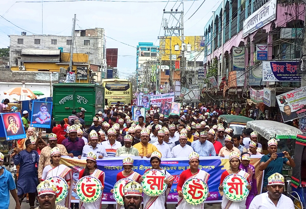 বরাবরের ন্যায় যশোরে পালিত হলো শ্রীকৃষ্ণের জন্মষ্টামী বাংলাদেশ পূজা উদযাপন পরিষদের আয়োজনে অভয়নগর উপজেলা ও নওয়াপাড়া পৌর শাখার উদ্যোগে যুগাবতার শ্রীকৃষ্ণের ৫২৪৯তম জন্মাষ্টমী উপলক্ষে মঙ্গল শোভাযাত্রা ও আলোচনা সভা অনুষ্ঠিত হয়। বুধবার সকাল দশটায় এ উপলক্ষে একটি বর্ণাঢ্য মঙ্গল শোভাযাত্রা বের হয়। শোভাযাত্রাটি নওয়াপাড়া নগর ঘুরে কালীবাড়ি মন্দির প্রঙ্গনে সমাবেশে মিলিত হয়।