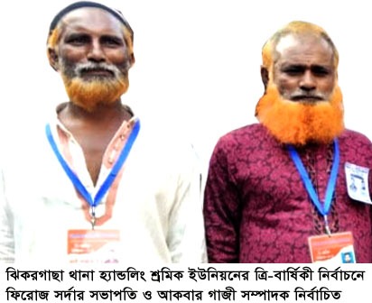 যশোরের ঝিকরগাছা থানা হ্যান্ডলিং শ্রমিক ইউনিয়নের ত্রি-বার্ষিকী নির্বাচনে ফিরোজ সর্দার সভাপতি ও আকবার গাজী সাধারণ সম্পাদক নির্বাচিত হয়েছে। শুক্রবার (১৪ সেপ্টেম্বর) সকাল ৮টা থেকে বিকাল ৪টা পর্যন্ত বিরতিহীন ভাবে উপজেলার মোড়স্থ ঝিকরগাছা দারুন উলুম কামিল মাদ্রাসার হল রুমে আনান্দ উল্লাশের মাধ্যদিয়ে শান্তি পূর্ণ ভাবে নির্বাচন অনুষ্ঠিত হয়। নির্বাচনে ৩৫৫জন সদস্যদের মধ্যে ৩২৯জন সদস্য তাদের ভোট প্রদান করেছেন। এই ত্রি-বার্ষিকী নির্বাচনে ফিরোজ-আকবার ও মহাতাপ-জালাল এর মোট ৯সদস্যের দুটি প্যানেল অংশ নেয়। যার মধ্যে ফিরোজ-আকবার প্যানেল বিজয়ী হয়েছেন বলে নির্বাচন পরিচালনা কমিটি সূত্রে জানা গেছে।