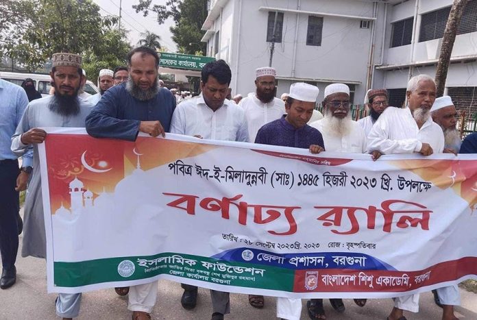 বরগুনা জেলা শহরসহ উপজেলা পর্যায়ে শোভাযাত্রা, আলোচনা সভা, পুরস্কার বিতরণ, হামত- নাত ও দোয়া মাহফিলের মধ্য দিয়ে ঈদে মিলাদুন্নবী (স.) আজ উদযাপন করা হয়।