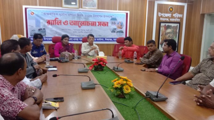 অসমতার বিরুদ্ধে লড়াই করি দুর্যোগ সহনশীল ভবিষ্যৎ গড়ি এই প্রতিপাদ্য বিষয় কে সামনে রেখে ময়মনসিংহের ঈশ্বরগঞ্জে আন্তর্জাতিক দুর্যোগ প্রশমন দিবস ২০২৩ইং উদযাপন। এ উপলক্ষে উপজেলা পরিষদ চত্বর থেকে এক বর্ণাঢ্য র্যালি বের করা হয়। র্যালিটি উপজেলা পরিষদের সামনের আঞ্চলিক মহাসড়ক প্রদক্ষিণ করে পুনঃ উপজেলা পরিষদ চত্বরে এসে শেষ হয়।