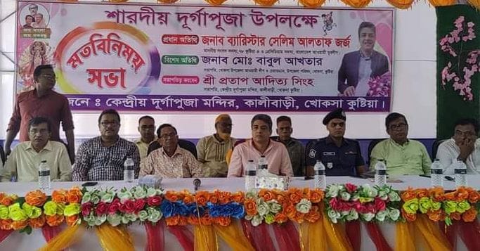 দুর্গাপূজা মন্দির কমিটির সভাপতি প্রতাপ আদিত্যর সভাপতিত্বে এ সভায় প্রধান অতিথি হিসেবে উপস্থিত ছিলেন, কুষ্টিয়া-৪ আসনের সংসদ ও আওয়ামী যুবলীগের প্রেসিডিয়াম সদস্য ব্যারিস্টার সেলিম আলতাফ জর্জ।