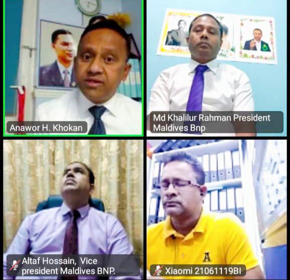 ২০ অক্টোবর স্থানীয় সময় শুক্রবার রাত আটটায় ওই ভার্চুয়াল সভার সভাপতিত্বে ছিলেন মালদ্বীপ বিএনপির সভাপতি মো. খলিলুর রহমান। যাতে সঞ্চালনা করেন সংগঠনের সাধারণ সম্পাদক জহিরুল ইসলাম।