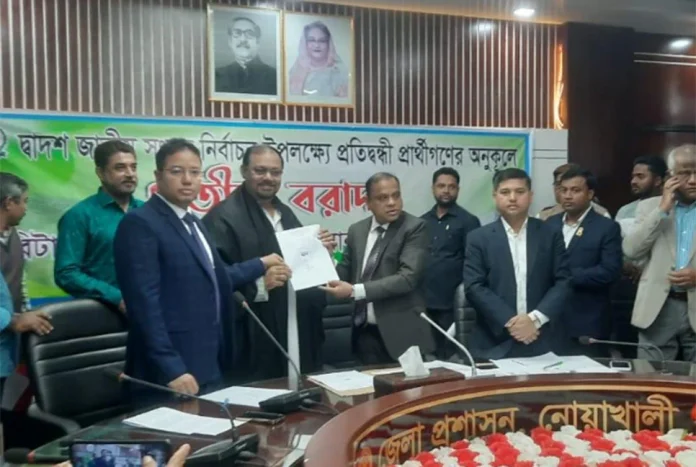 নোয়াখালী ৬টি আসনে আওয়ামী লীগ, জাতীয় পার্টি, স্বতন্ত্র (আওয়ামী লীগ বিদ্রোহী), বাংলাদেশ ইসলামী ফ্রন্ট, বাংলাদেশ সাংস্কৃতিক জোট ও জাতীয় সমাজতান্ত্রিক দল (জাসদ) সহ বিভিন্ন দলের প্রার্থীদের প্রতীক বরাদ্দ দেওয়া হয়।