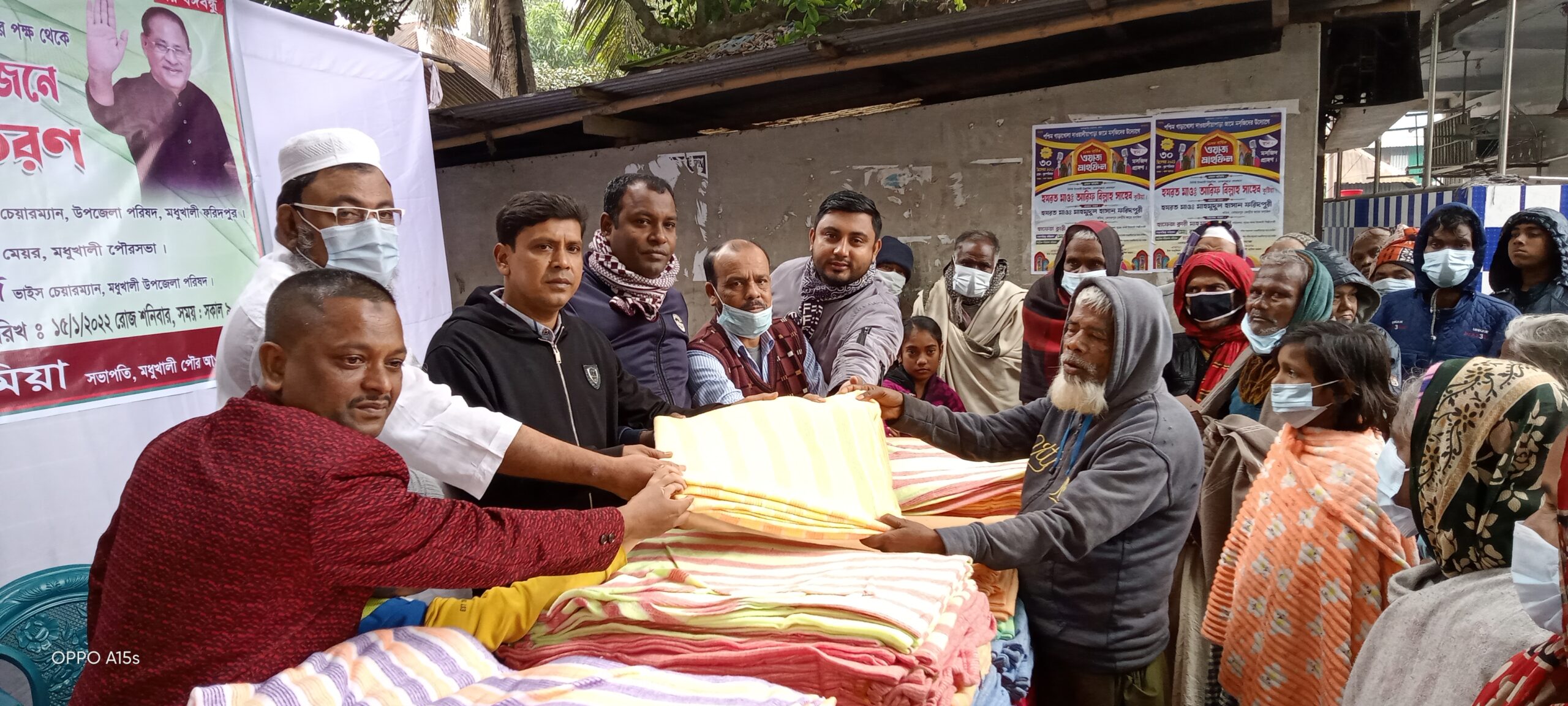 ১৫ জানুয়ারি শনিবার সকাল ১০ টায় মধুখালী পৌর আওয়ামীলীগের সভাপতি হাজী মোহাম্মদ আলী মিয়ার সার্বিক ব্যবস্থাপনায় তার নিজ বাসভবনে ৫ শতাধিক শীতার্তদের মাঝে কম্বল বিতরণ করেন।