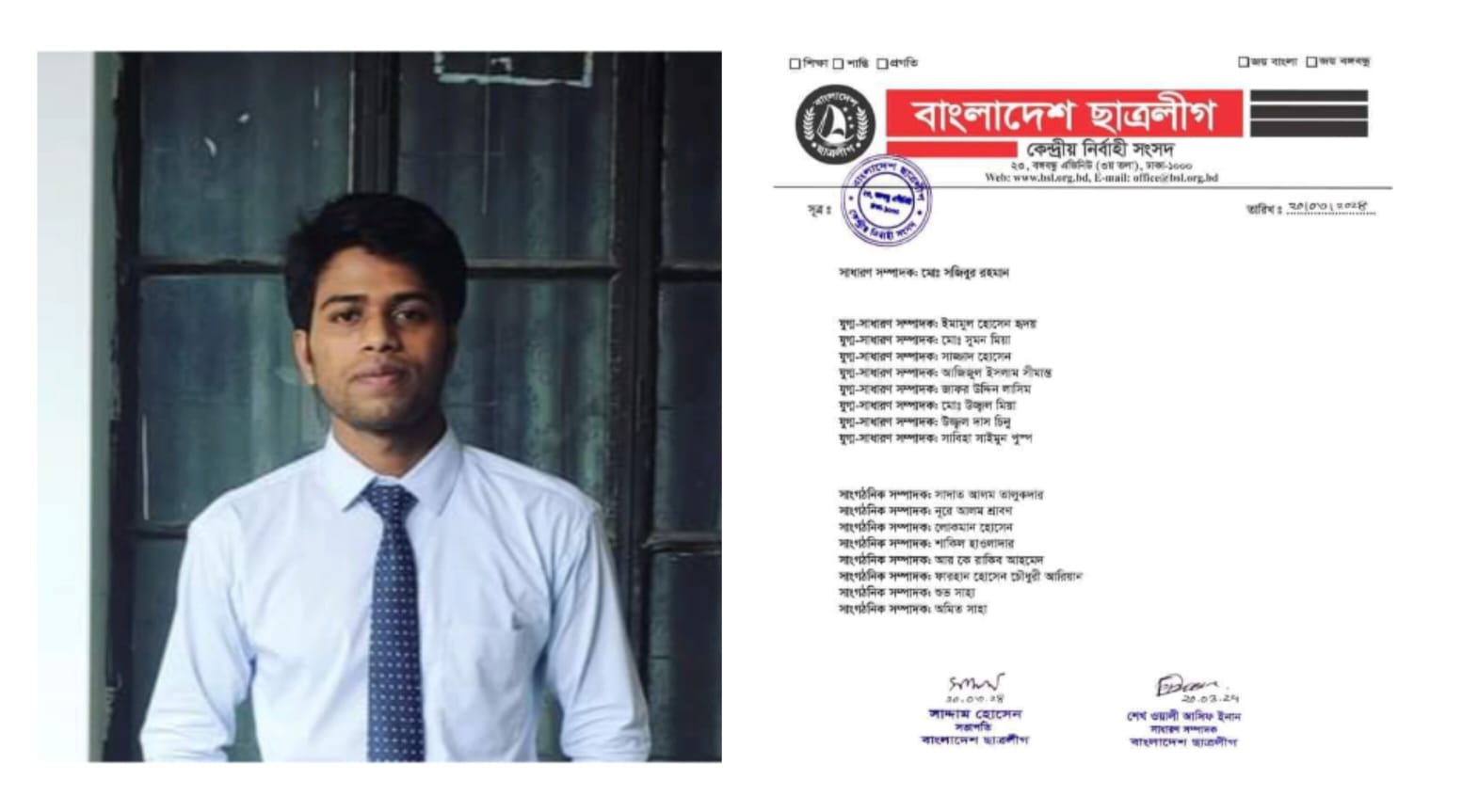 গত ২০ মার্চ রাতে বাংলাদেশ কেন্দ্রীয় ছাত্রলীগ সিলেট শাহজালাল বিজ্ঞান ও প্রযুক্তি বিশ্ববিদ্যালয় ছাত্রলীগের আংশিক কমিটি ঘোষণা করে। খলিলুর রহমান কে সভাপতি ও সজিবুর রহমান কে সাধারণ সম্পাদক নির্বাচিত করে ৪৫ সদস্য বিশিষ্ট কমিটি ঘোষণা করা হয়। এই কমিটির সিনিয়র যুগ্ম সাধারণ সম্পাদক পদে জায়গা করে নেন ময়মনসিংহের ইমামুল হোসেন হৃদয়। তিনি শাহজালাল বিজ্ঞান ও প্রযুক্তি বিশ্ববিদ্যালয়ের লোকপ্রশাসন বিভাগের শিক্ষার্থী।