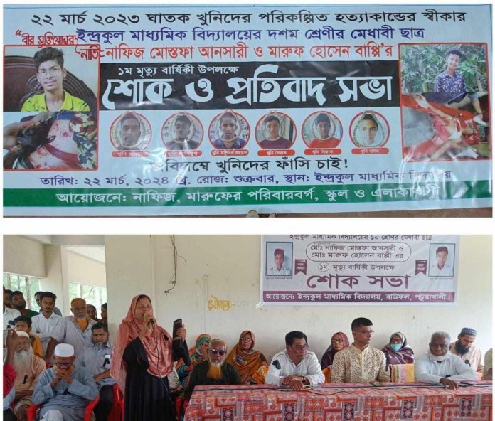 বাউফলে নিহত স্কুল ছাত্র নাফিজ ও মারুফের প্রথম মৃত্যুবার্ষিকী পালন