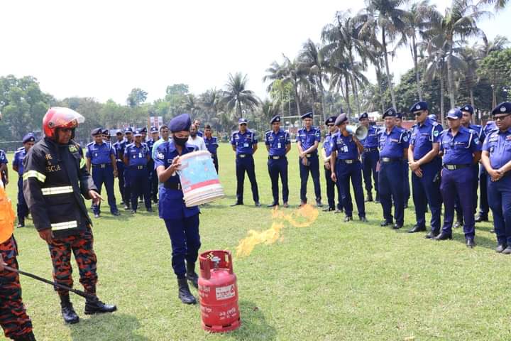 নড়াইল জেলা ফায়ার সার্ভিস ও সিভিল ডিফেন্সের স্টেশন মাস্টার জনাব মাসুদ রানা প্রথমে পুলিশ সদস্যদের উদ্দেশে আগুন নেভানোর বিভিন্ন কলা-কৌশল বিষয়ে আলোচনা করেন। পরবর্তীতে জনাব মাসুদ রানা ও তার টিম আগুন নিভানো, আগুনে আটকে পড়া ভিকটিমকে উদ্ধার পূর্বক প্রাথমিক চিকিৎসা শেষে দ্রুত হাসপাতালে প্রেরণ, লিফটে আটকে পড়া ব্যক্তিকে উদ্ধার করার যন্ত্র, বিল্ডিং এর নিচে চাপা পড়লে উদ্ধার করার যন্ত্রসহ আধুনিক যন্ত্রাদি প্রদর্শন করেন। পরবর্তীতে পুলিশ সদস্যরা নিজ হাতে আগুন নেভানো কাজে অংশগ্রহণ করেন। জেলার সকল ইউনিটের পুলিশ সদস্যদের সাথে নিয়ে পুলিশ সুপার মহোদয় ফায়ার সার্ভিস টিম কর্তৃক প্রদর্শিত আগুন নেভানোর প্রতিটি মহড়া উপভোগ করেন। মহড়া শেষে পুলিশ সুপার মহোদয় বলেন, “জাতীয় জরুরি সেবা ৯৯৯ এ পুলিশের সাথে বাংলাদেশ ফায়ার সার্ভিস ও সিভিল ডিফেন্স দক্ষতা ও পেশাদারিত্বের সাথে কাজ করে যাচ্ছে। ফায়ার সার্ভিসের সদস্যরা মৃত্যু ঝুঁকি নিয়ে কাজ করে মানুষের জীবন বাঁচায়। দেশের জন্য তাদের অবদান অসীম। সাম্প্রতিক সময়ে ঢাকায় বড় বড় দুর্ঘটনায় ফায়ার সার্ভিস সদস্যদের আন্তরিকতায় অনেক মানুষ জীবন ফিরে পেয়েছে। রাস্তায় ফায়ার সার্ভিস গাড়ি দেখলে অবশ্যই তাদের আগে যাওয়ার সুযোগ দিতে হবে।”