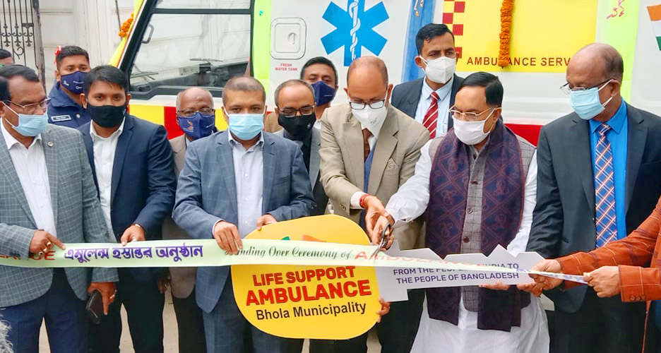 ভোলা পৌরসভাকে অ্যাম্বুলেন্স উপহার দিয়েছে ভারত। এ সময় ভারতীয় সহকারী হাইকমিশনার (খুলনা) রাজেশ কুমার রায়না বলেন, ‘আমরা যে অ্যাম্বুলেন্সটি উপহার দিলাম তাতে অত্যাধুনিক জীবন রক্ষাকারী যন্ত্রপাতি রয়েছে। এটি রোগীদের জরুরি সেবা ও ট্রমা লাইফ সাপোর্ট প্রদানে সাহায্য করবে। ভোলা পৌরসভার ভবন চত্বরে শনিবার বিকাল ৩ টার সময় ভারতীয় সহকারী হাইকমিশনার রাজেশ কুমার রায়না পৌর মেয়র মনিরুজ্জামান মনিরের কাছে অ্যাম্বুলেন্সটির চাবি হস্তান্তর করেন।