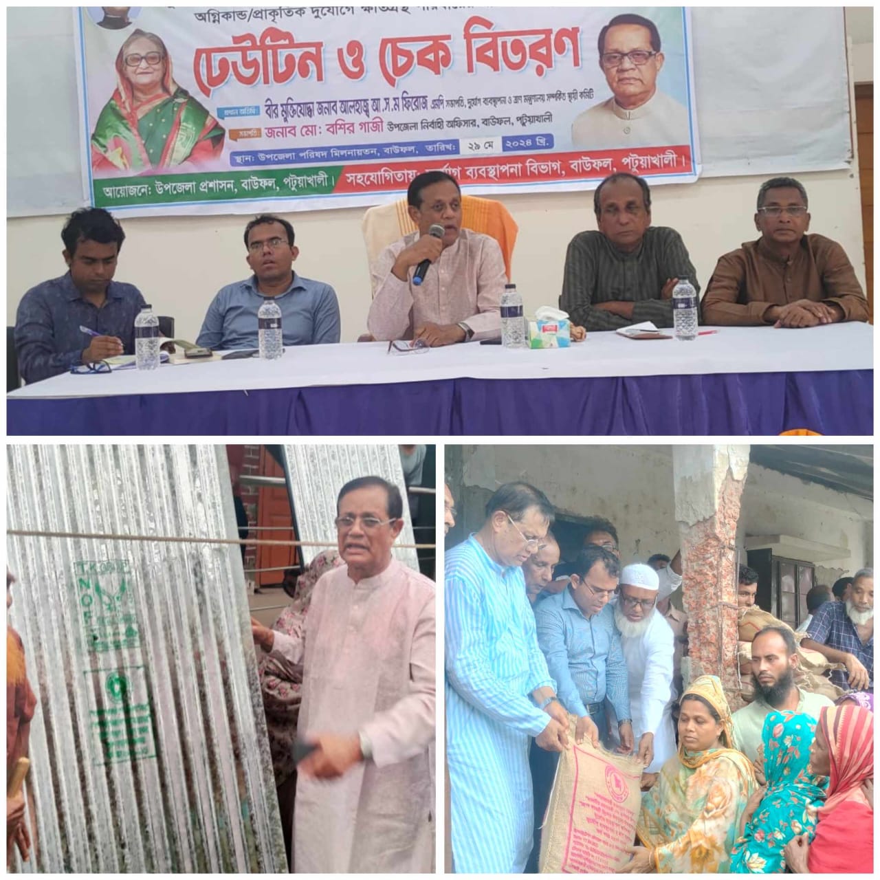 বুধবার (২৯ মে) দিনব্যাপী পটুয়াখালীর বাউফল উপজেলার চন্দ্রদ্বীপ, কেশবপুর, নাজিরপুর ও ধুলিয়া ইউনিয়নের প্লাবিত এলাকায় মানুষের মাঝে ত্রাণ বিতরণ করেন স্থানীয় এই সংসদ সদস্য। ত্রাণ বিতরণ শেষে বিকেল ৪ ঘটিকায় বাউফল উপজেলা নির্বাহী কর্মকর্তা মোহাম্মদ বশির গাজীর সভাপতিত্বে সাংসদ আ স ম ফিরোজ ঘূর্ণিঝড় রেমালে ক্ষতিগ্রস্ত ২৫০ পরিবারের মাঝে টিন বিতরণ করেন। এ সময় উপস্থিত ছিলেন নবনির্বাচিত উপজেলা চেয়ারম্যান মোঃ মোসারেফ হোসেন খান, নবনির্বাচিত ভাইস চেয়ারম্যান মোঃ আনিসুর রহমান, উপজেলা প্রকল্প বাস্তবায়ন কর্মকর্তা রাজিব বিশ্বাস প্রমূখ।