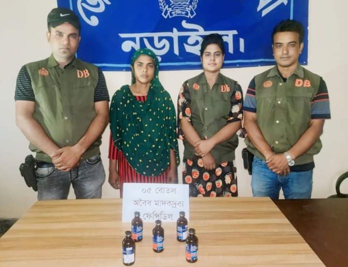 গত ০৮ জুলাই ২০২৪ রাত ২১:৪৫ ঘটিকার দিকে নড়াইল জেলার সদর থানাধীন ৪নং আউড়িয়া ইউপির অন্তর্গত রামচন্দ্রপুর সাকিনস্থ জনৈক কবির শেখ (৩৫) এর গোয়াল ঘরের দক্ষিণ পাশে কাচা রাস্তার উপর হতে তাকে আটক করা হয়। গোপন সংবাদের ভিত্তিতে নড়াইল জেলা গোয়েন্দা শাখার অফিসার ইনচার্জ জনাব মোঃ সাব্বিরুল আলম এর তত্ত্বাবধানে এসআই (নিঃ) মোঃ সাইফুল ইসলাম, এএসআই (নিঃ) মোঃ আনিসুজ্জামান ও এএসআই (নিঃ) মাহফুজুর রহমান সঙ্গীয় ফোর্সসহ অভিযান চালিয়ে আকলিমা পারভীন (৪২) কে গ্রেফতার করে। এ সময় ধৃত আসামির নিকট থেকে অবৈধ মাদকদ্রব্য ০৫ (পাঁচ) বোতল ফেন্সিডিল জব্দ করা হয়। এ সংক্রান্তে নড়াইল সদর থানায় মাদকদ্রব্য নিয়ন্ত্রণ আইনে একটি মামলা রুজু করা হয়েছে। আসামিকে বিজ্ঞ আদালতে সোপর্দ করা হয়েছে।