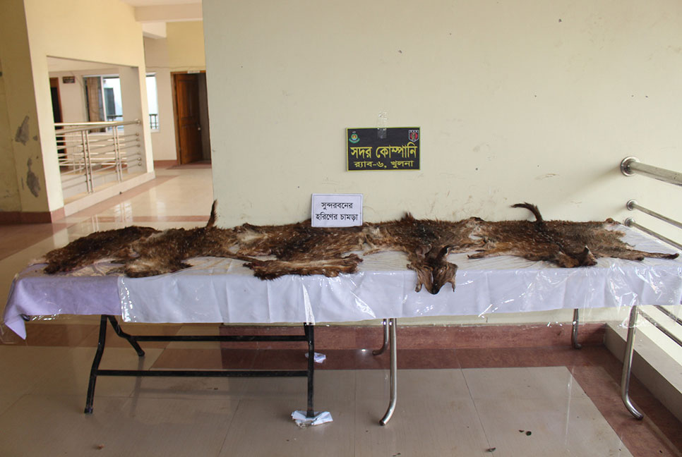 বুধবার খুলনার লবনচরায় র‌্যাব-৬ এর কার্যালয়ে সংবাদ সম্মেলনে এসব তথ্য জানানো হয়। র‌্যাব-৬ এর কোম্পানী কমান্ডার আল-আসাদ মো. মাহফুজুল ইসলাম জানান, গোপন সংবাদের ভিত্তিতে মঙ্গলবার রাত ১১টার দিকে মোংলার বিদ্যাবাহন খেয়াঘাট থেকে ৫টি হরিণের চামড়াসহ আল-আমিনকে গ্রেফতার করা হয়। তাকে জিজ্ঞাসাবাদ করে চক্রের আরও কয়েকজন সদস্যের নাম জানা গেছে। এ ঘটনায় জড়িত চক্রের অন্যান্য সদস্যদের গ্রেফতারে অভিযান চলছে।