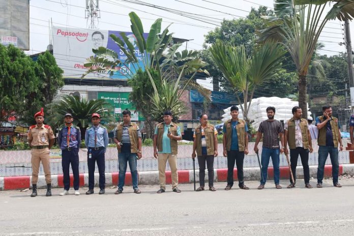 সোমবার (১২ আগস্ট) সকালে পঞ্চগড় শের ই বাংলা পার্ক চৌরঙ্গি মোরে শিক্ষার্থীদের পাশাপাশি পুলিশ সদস্যরাও ট্রাফিক নিয়ন্ত্রণে কাজ করতে দেখা গেছে।