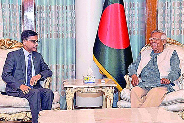 অন্তর্বর্তী সরকারের প্রধান উপদেষ্টা অধ্যাপক ড. মুহাম্মদ ইউনূসের সঙ্গে সৌজন্য সাক্ষাৎ করেছেন ভারতের হাইকমিশনার প্রণয় ভার্মা। এ সময় প্রধান উপদেষ্টা বাংলাদেশের পূর্বাঞ্চলে আকস্মিক বন্যার কারণ জানতে চান। জবাবে হাইকমিশনার জানান, ত্রিপুরার বন্যা অনাকাঙ্ক্ষিত। এতে দুই দেশ ক্ষতিগ্রস্ত হচ্ছে। স্বয়ংক্রিয়ভাবে পানি বেড়ে গেছে বলেও মন্তব্য করেছেন প্রণয় ভার্মা। বৈঠকে বাংলাদেশকে সর্বোচ্চ সহযোগিতার কথা বলেছেন ভারতীয় হাইকমিশনার। গতকাল বিকালে রাষ্ট্রীয় অতিথি ভবন যমুনায় প্রধান উপদেষ্টার সঙ্গে তাঁর কার্যালয়ে বৈঠক করেন ঢাকাস্থ ভারতের হাইকমিশনার প্রণয় ভার্মা। বৈঠক শেষে ফরেন সার্ভিস একাডেমিতে ব্রিফিংয়ের বিষয়বস্তু তুলে ধরেন প্রধান উপদেষ্টার প্রেস সচিব শফিকুল ইসলাম। বন্যা পরিস্থিতি নিয়ে ভারতের অবস্থান প্রসঙ্গে প্রেস সচিব বলেন, বৈঠকে প্রণয় ভার্মা জানান, ত্রিপুরায় বন্যা ছিল অনাকাঙ্ক্ষিত। অনেক উঁচু হয়ে পানি প্রবাহিত হচ্ছিল। ফলে স্বয়ংক্রিয়ভাবে বাঁধটি খুলে যায়। এই বন্যায় দুই দেশের মানুষ ক্ষতিগ্রস্ত হয়েছেন জানিয়ে ভারতীয় হাইকমিশনার বলেছেন, তাদের ওখানেও প্রায় ৫০ হাজারের মতো লোক স্থানান্তরিত হয়েছেন। প্রধান উপদেষ্টা বন্যা পরিস্থিতি নিয়ে দুই দেশের মধ্যে সময় সময় উচ্চপর্যায়ের সংলাপ অনুষ্ঠানের ওপর গুরুত্বারোপ করেন বলেও জানান প্রেস সচিব। তিনি বলেন, সীমান্ত সমস্যা সমাধানে বিজিবি ও বিএসএফের মধ্যে যে সংলাপ অনুষ্ঠিত হয়, তার দৃষ্টান্ত দিয়ে প্রধান উপদেষ্টা বলেছেন, বন্যা নিয়েও বাংলাদেশ ও ভারতের মধ্যে এ ধরনের আলোচনা হতে পারে। প্রধান উপদেষ্টার সঙ্গে বৈঠকে ঢাকায় অবস্থিত হাইকমিশনের নিরাপত্তা নিয়ে প্রণয় ভার্মা উদ্বেগ প্রকাশ করেন। প্রেস সচিব বলেন, সামাজিক যোগাযোগমাধ্যমে কিছু পোস্ট হচ্ছে, যা দুঃখজনক বলে ভারতীয় হাইকমিশনার উদ্বেগ প্রকাশ করেছেন। এই উদ্বেগ প্রসঙ্গে প্রধান উপদেষ্টা ভারতের প্রধানমন্ত্রীর সঙ্গে টেলিফোনের প্রসঙ্গটি তুলে ধরেন বলে জানান প্রেস সচিব। তিনি বলেন, ভারতীয় হাইকমিশনারকে প্রধান উপদেষ্টা বলেছেন, বাংলাদেশ একটি বড় পরিবার। আমরা সবাই ভাইবোন। সবাই একসঙ্গে মিলেমিশে আছি। ভারতের প্রধানমন্ত্রী নরেন্দ্র মোদির সঙ্গে টেলিফোনে প্রধান উপদেষ্টা আগেই বলেছেন, সংখ্যালঘু নির্যাতন নিয়ে কিছু অতিরঞ্জিত রিপোর্ট ছিল। তিনি ভারতীয় সাংবাদিকদের ঢাকায় এসে এ বিষয়ে সরেজমিন প্রতিবেদন করারও আহ্বান জানিয়েছিলেন।