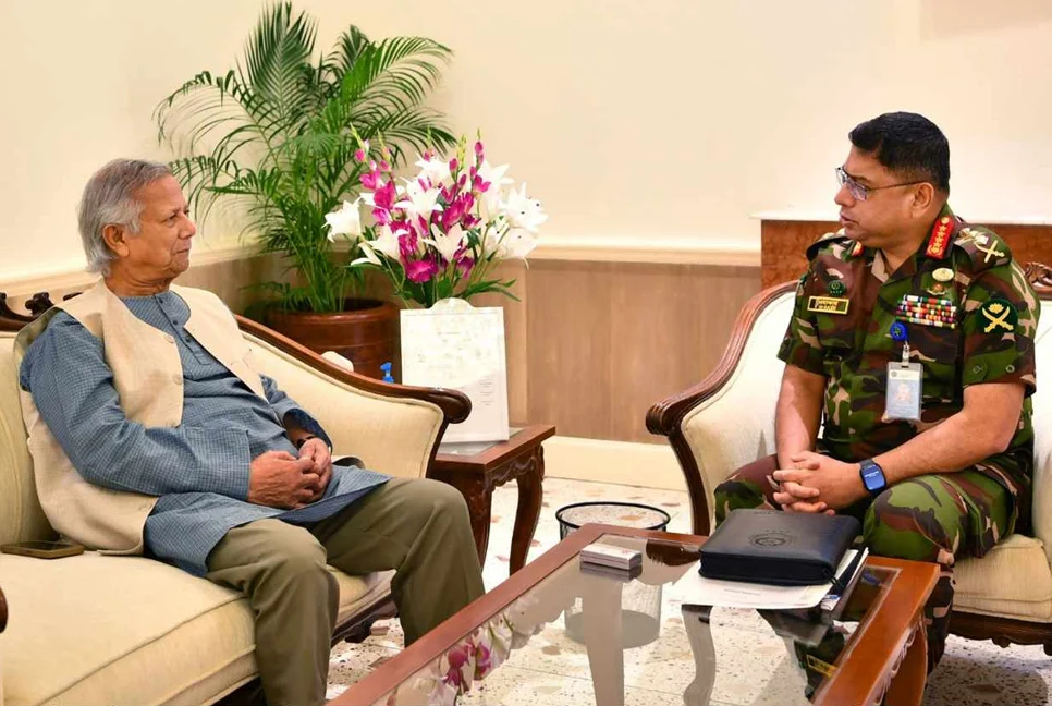 বাংলাদেশের অন্তর্বর্তীকালীন সরকারের প্রধান উপদেষ্টা প্রফেসর ড. মুহাম্মদ ইউনূসের সাথে সৌজন্য সাক্ষাৎ করেছেন সেনাবাহিনী প্রধান জেনারেল ওয়াকার-উজ-জামান।