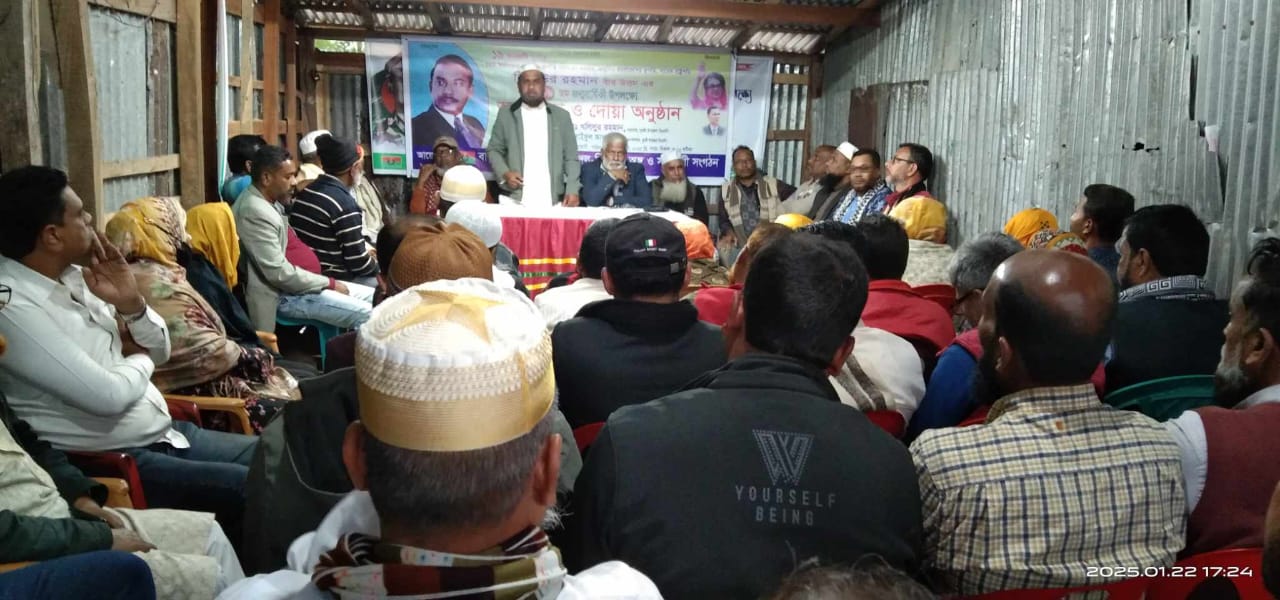বুধবার বিকাল ৪.৩০ মিনিটের সময় উপজেলা বিএনপি কার্যালয়ে উপজেলা বিএনপির সভাপতি মোঃ খলিলুর রহমানের সভাপতিত্বে এবং সাধারণ সম্পাদক মোঃ সাইফুল আলম মৃধার সঞ্চালনায় এ আলোচনা সভা ও দোয়া মোনাজাত অনুষ্ঠিত হয়। এ সময় উপস্থিত ছিলেন উপজেলা বিএনপির সিনিয়র সহ সভাপতি মাওলানা মোঃ মতিউর রহমান, সহ সভাপতি মোঃ আমির হোসেন হাওলাদার, যুগ্ম সাধারণ সম্পাদক মোঃ জাহিদুল হক হাওলাদার, উপজেলা যুবদলের আহবায়ক মোঃ জসিম উদ্দিন, সিনিয়র যুগ্ম আহবায়ক মোঃ জাকির হোসেন, সদস্য সচিব মোঃ সালাউদ্দিন রিপন শরীফ, যুগ্ম আহবায়ক সাইদুর রহমান খান ও সহিদুল ইসলাম সরদার, উপজেলা সেচ্ছাসেবক দলের আহবায়ক সৈয়দ অহিদুল ইসলাম, সদস্য সচিব মোঃ মাসুদুল আলম মৃধা, উপজেলা কৃষক দলের আহবায়ক মোঃ জাহাঙ্গীর আলম, সদস্য সচিব মোঃ জাহিদুল ইসলাম, উপজেলা ছাত্রদলের আহবায়ক মোঃ গোলাম সরোয়ার প্রমূখ। দোয়া ও মোনাজাত পরিচালনা করেন মাওলানা মোঃ মতিউর রহমান।