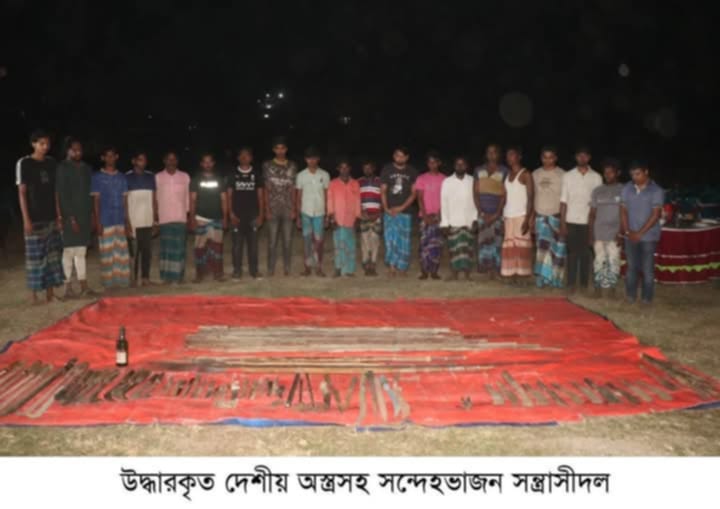 বাংলাদেশ সেনাবাহিনীর ৯৯ কম্পোজিট ব্রিগেড, আর্মি এভিয়েশন, র্যাব, পুলিশ এবং স্থানীয় প্রশাসনের সমন্বয়ে গঠিত টাস্ক ফোর্স গোপন তথ্যের ভিত্তিতে এ অভিযান চালায়। এসময় দেড় শতাধিক ধারালো অস্ত্র, তিনটি মোবাইল ফোন এবং ২০ জন চিহ্নিত সন্ত্রাসী ও সন্দেহভাজন ব্যক্তিকে আটক করা হয়।