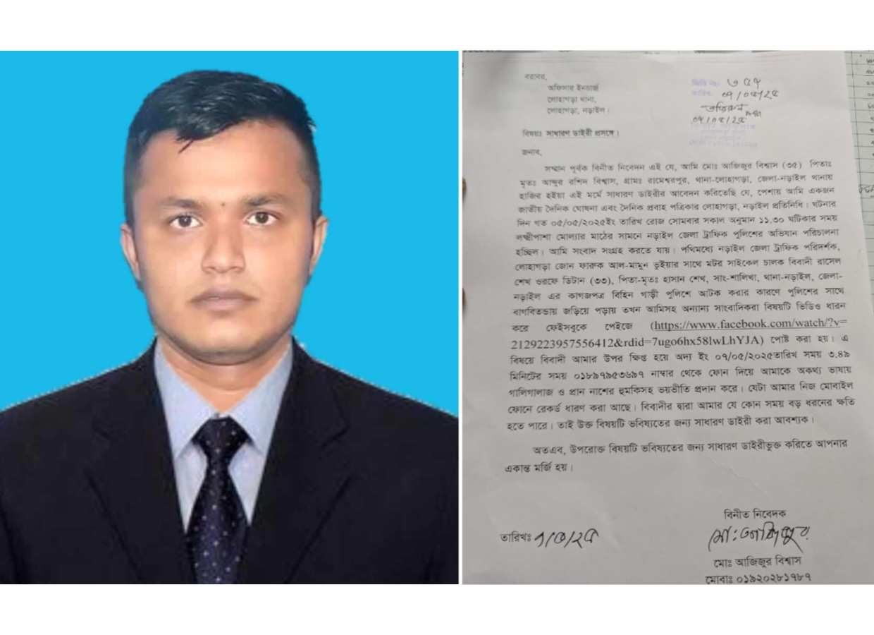 নড়াইলে নিউজ প্রকাশের জেরে সাংবাদিককে প্রাণ-নাশের হুমকি, থানায় জিডি