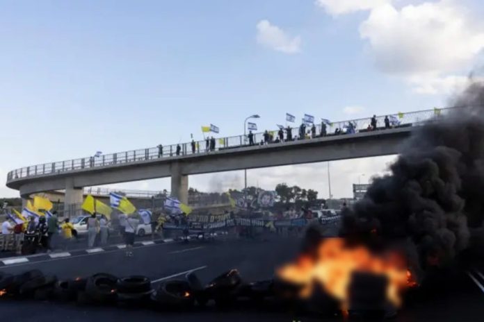 এদিকে, ইসরায়েলের প্রধান প্রধান সড়ক অবরোধ করে এই বিক্ষোভ চলায় যান চলাচল বন্ধ হয়ে গেছে। দেশজুড়ে মহাসড়কগুলোতে এখন গাড়ির দীর্ঘ সারি দেখা যাচ্ছে।