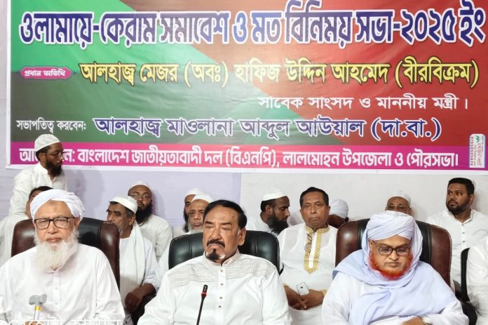 বৃহস্পতিবার (১৮ সেপ্টেম্বর) সকালে ভোলার লালমোহন উপজেলা ও পৌরসভা বিএনপির আয়োজনে লালমোহন থানার মোড়ে পাবলিক লাইব্রেরীর হল রুমে ওলামায়ে কেরাম সমাবেশ ও মতবিনিময় সভায় প্রধান অতিথির বক্তব্যে এসব কথা বলেন তিনি।