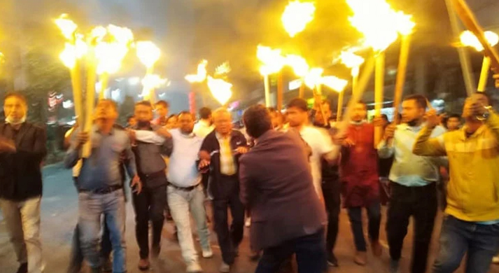 প্রয়াত রাষ্ট্রপতি জিয়াউর রহমানের বীর উত্তম খেতাব বাতিলের সিদ্ধান্তের প্রতিবাদে রাজধানীতে ফের মশাল মিছিল করেছেন বিএনপি নেতাকর্মীরা। শুক্রবার সন্ধ্যায় নয়াপল্টন এলাকায় দলের সিনিয়র যুগ্ম মহাসচিব রুহুল কবির রিজভীর নেতৃত্বে এই মিছিল বের করা হয়।