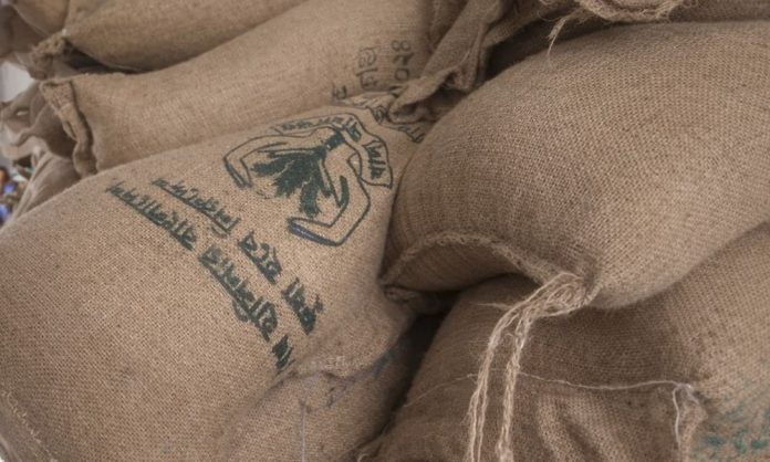 চাল বিতরণের সময় কয়েকটি বস্তায় উল্লিখিত স্লোগানটি দেখা যায়।