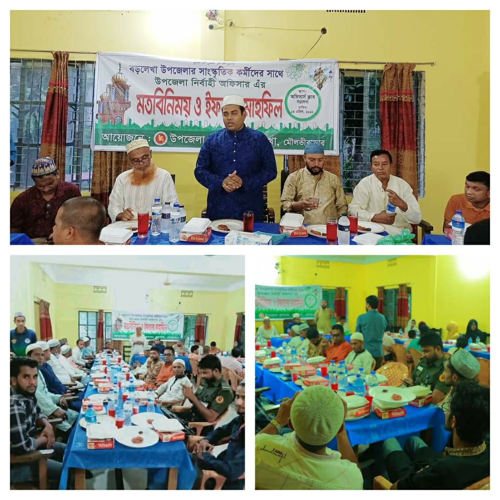 মৌলভীবাজার জেলার বড়লেখায় উপজেলা প্রশাসনের আয়োজনে সাংস্কৃতিক কর্মীদের সম্মানে ইফতার মাহফিল ও মতবিনিময় সভা অনুষ্ঠিত হয়েছে।
